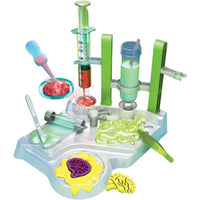 The kit comes with all the tools needed to set forth on your alien slime research mission. Use the syringe to conduct viscosity tests, roll the slime with a roller, and dissect it with tweezers and a plastic scalpel. Cut a brain shape out of the slime, stamp it with an alien head, and add eyes to it! Explore your slimes’ make-up and properties — like their different colours, glittery components, and glowing and colour-changing effects — and then use your findings to correctly identify the different slimes. Real science and playful science fiction come together in this wacky, activity-filled kit!