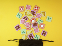 CONTENTS: CONTENTS: 4 player boards, 80 food tiles, 1 score board, 1 Ziggy board, 8 swap tokens, 4 take tokens, 1 drawstring bag, 4 wood player pawns, 1 wood Ziggy pawn, 1 rules of play booklet.