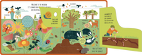 Is a cased board book binding with large peek inside printed flaps and scenes underneath perfect for stimulating the senses and learning communication skills. For 1+ years.