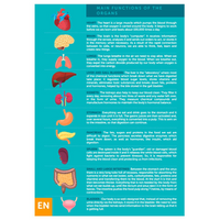 This card indicates the location of the main organs of the human body and also details their main functions.