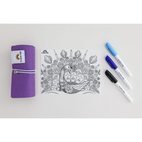 The perfect amount of pens for colouring on the go. Just enough for colourful designs, not too many to keep track of in a busy cafe or doctors waiting room. Each pen has its own slot in the durable felt roll-up case, helping little ones keep track when packing up.