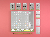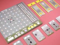 CONTENTS: 1 pad of double-sided tree diagrams, 8 movement tiles, 8 achievement tiles, 3 letter tiles, 1 rules of play booklet.
