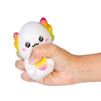 Squish and squeeze the stress away with Smoosho's Slow Rising Axolotl! Crafted from memory foam material, this little axolotl will slowly return to its original shape. Irresistibly soft, squishy, and durable, it's the perfect way to decompress!