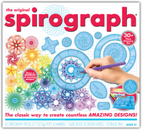 Set includes: 19 x Spirograph precision wheels, 2 x Spirograph precision rings, 1 Spirograph precision rack, 6g reusable Spiro-putty, 8 x markers, 20 sheets of design paper, storage tray and 14 page guide book.