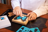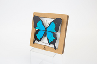 Colorful parts cut with a laser cutter are assembled and finally fixed to a board with art pins to create a finished product that looks like a real specimen.