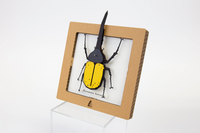 Colourful parts cut with a laser cutter are assembled and finally fixed to a board with art pins to create a finished product that looks like a real specimen.