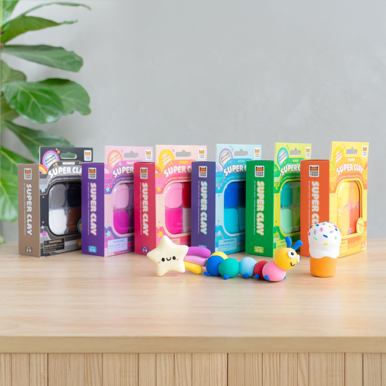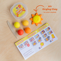 Little hands can bring big ideas to life with this soft, lightweight, air-drying clay. Super Clay – Sunrise invites kids to roll, knead and sculpt vibrant colours to create two fun characters — a sun and duckling — using step-by-step visual instructions, or to shape whatever their imagination comes up with. No oven needed — just air-dry for play or display.