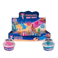The fun doesn't stop with this axolotl bead putty! 2 toys in 1: squish and stretch the putty, squeeze the tactile rainbow beads, and throw in the stretchy axolotl toy!