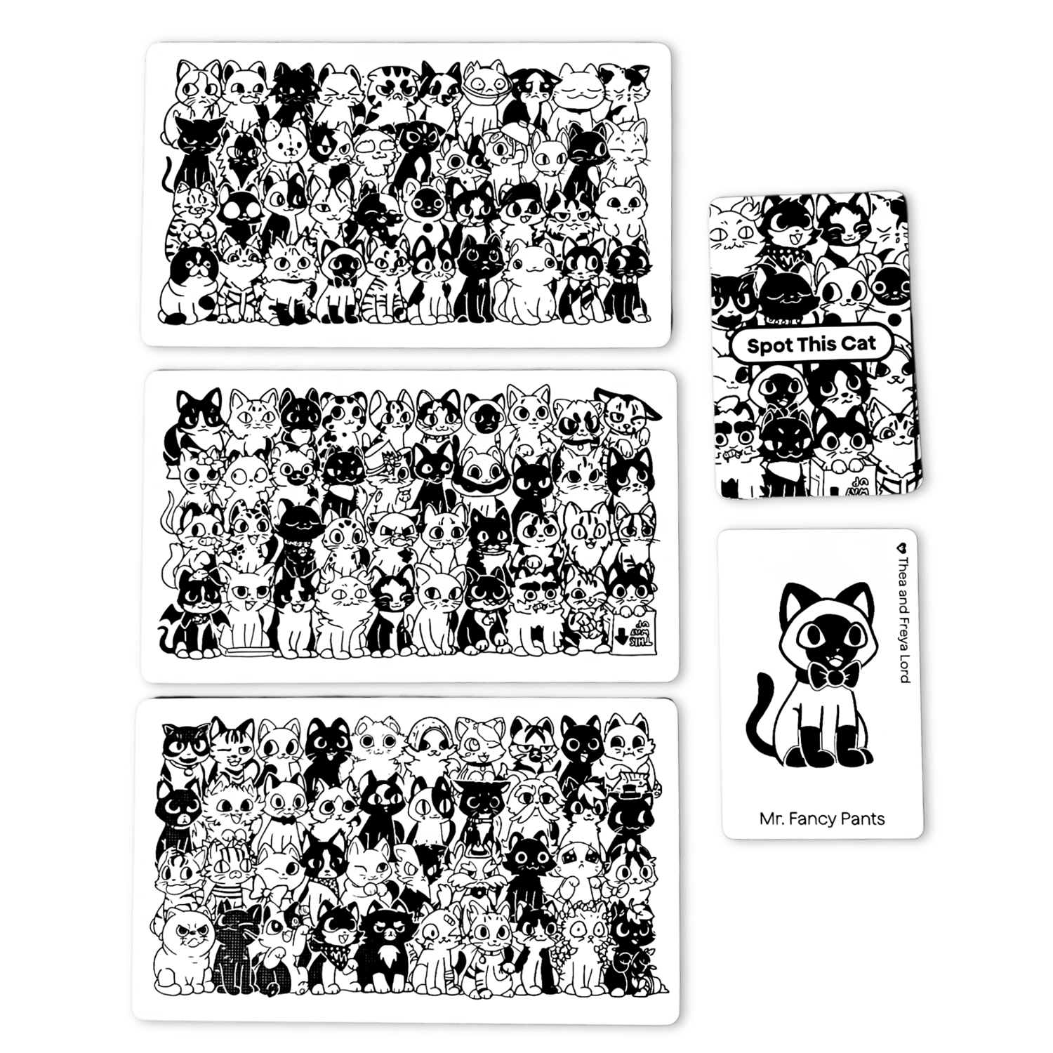 Cat Spotting is a fun and fast series of games where the objective is simple: be the first player to spot the hidden cat in the crowd! These games are best played with 2 players, but can be enjoyed with more.