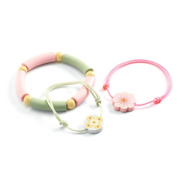 Cécile's 3 Bracelets in Heart-Shaped Box - Adorable Adjustable Link Bracelets with Wooden Beads for Kids.