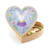 This charming box, adorned with a cute little rabbit, contains three adorable link bracelets. The thick cardboard heart-shaped box is perfect for children to store their little treasures. Each bracelet features adjustable sliding knots, allowing the size to be customized between 10 cm and 18 cm. Made with wooden beads, these bracelets are both stylish and fun for kids to wear and share!